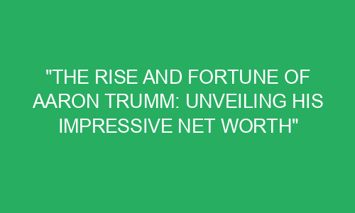 The Rise and Fortune of Aaron Trumm: Unveiling His Impressive Net Worth Have you ever wondered how someone can go from rags to riches? Today, we’re going to explore the remarkable journey of Aaron Trumm, a man who has defied all odds and accumulated an impressive net worth through his hard work and determination. From