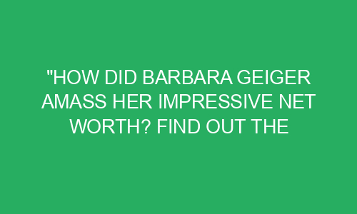 How Did Barbara Geiger Amass Her Impressive Net Worth? Find Out the Jaw-Dropping Numbers! Introduction: Have you ever wondered how some individuals manage to accumulate an enormous amount of wealth over their lifetime? Well, one such person is Barbara Geiger, a remarkable woman who has built an impressive net worth through her unwavering determination and