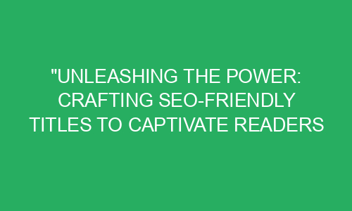 Unleashing the Power: Crafting SEO-Friendly Titles to Captivate Readers and Dominate Google Search Introduction: Have you ever wondered how some websites manage to appear at the top of your Google search results? It’s not magic, my friends, but rather a clever tactic called Search Engine Optimization (SEO). And one of the most crucial elements of