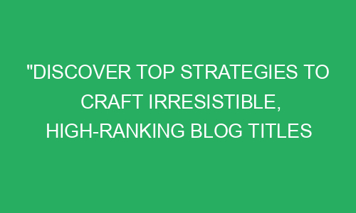 Discover Top Strategies to Craft Irresistible, High-Ranking Blog Titles for Google Search Introduction In the vast world of the internet, where countless blogs exist, how can you make sure your blog stands out and attracts readers? One crucial factor is crafting irresistible, high-ranking blog titles for Google search. A catchy title not only grabs the