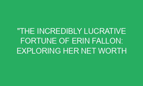 The Incredibly Lucrative Fortune of Erin Fallon: Exploring Her Net Worth and Success Story Introduction: Imagine a world where achieving unimaginable wealth and success is possible through hard work, determination, and a little bit of luck. Erin Fallon is a living testament to this incredible endeavor. From humble beginnings to a self-made millionaire, Erin’s journey