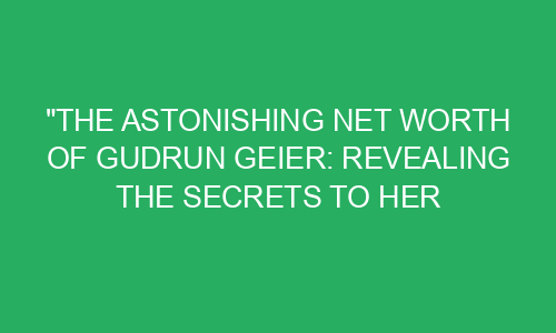 The Astonishing Net Worth of Gudrun Geier: Revealing the Secrets to Her Wealth Introduction: Have you ever wondered how some people accumulate vast amounts of wealth? Today, we are going to take a closer look at the astonishing net worth of Gudrun Geier and unveil the secrets that have contributed to her immense riches. Gudrun