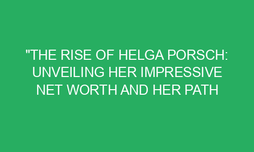 The Rise of Helga Porsch: Unveiling Her Impressive Net Worth And Her Path to Success! Introduction: In today’s blog post, we will delve into the fascinating journey of Helga Porsch, a remarkable woman who has achieved great success in her life. We will uncover her astonishing net worth and explore the path she took to