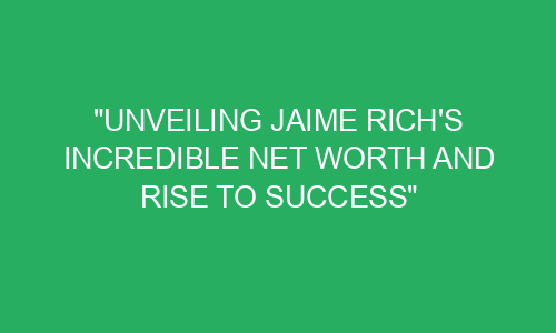 Unveiling Jaime Rich’s Incredible Net Worth and Rise to Success Have you ever wondered about the incredible success and net worth of Jaime Rich? Today, we will take a deep dive into his journey and unveil the secrets behind his remarkable achievements. From humble beginnings to becoming a renowned entrepreneur, Jaime Rich has truly made