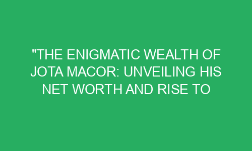 The Enigmatic Wealth of Jota Macor: Unveiling his Net Worth and Rise to Success Introduction: Have you ever heard of someone who seemed to possess an otherworldly level of wealth and success? One such enigmatic figure is Jota Macor, a man whose name has become synonymous with prosperity and opulence. In this blog post, we