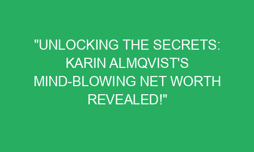 Unlocking the Secrets: Karin Almqvist’s Mind-Blowing Net Worth Revealed! Introduction: Have you ever wondered how some people accumulate massive wealth? Today, we are going to explore the fascinating journey of Karin Almqvist – a self-made millionaire with an incredible net worth. Prepare to be amazed as we dive into the secrets of her success and