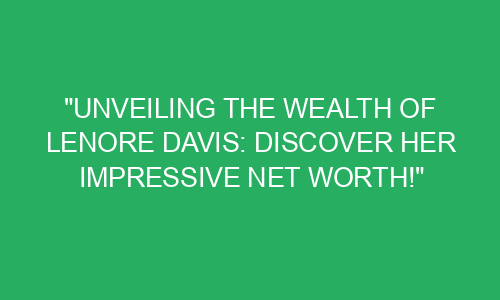 Unveiling the Wealth of Lenore Davis: Discover Her Impressive Net Worth! Once upon a time in a small town called Harmonyville, there lived a woman named Lenore Davis. Lenore was known for her kindness, generosity, and her astonishing wealth. Everyone in the town admired her luxurious lifestyle and wondered how she had come to amass