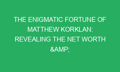 The Enigmatic Fortune of Matthew Korklan: Revealing the Net Worth & Secrets
