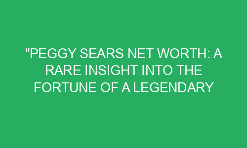 Peggy Sears Net Worth: A Rare Insight into the Fortune of a Legendary Investor Introduction: Welcome to this blog post, where we will take a closer look at the net worth of Peggy Sears, a legendary investor who has achieved great success in the financial world. Peggy Sears has made quite a name for herself