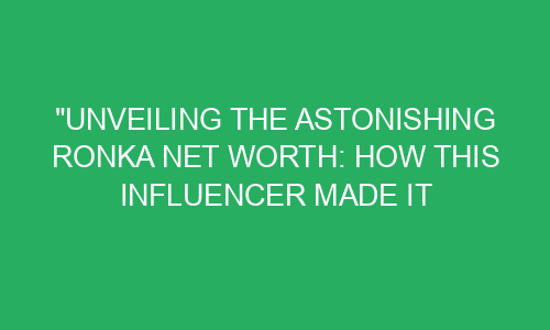 Unveiling the Astonishing Ronka Net Worth: How This Influencer Made It Big? Introduction: Meet Ronka, a social media influencer who has become a sensation in the digital world. From sharing her passion for fashion to inspiring millions with her motivational content, Ronka has captivated the hearts of her followers. Many wonder just how she made