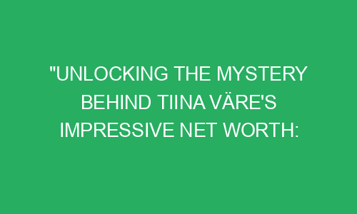 Unlocking the Mystery Behind Tiina Väre’s Impressive Net Worth: Revealed! Introduction: Have you ever wondered how some people amass incredible wealth? Well, today we’re going to unravel the mystery behind Tiina Väre’s impressive net worth. Tiina Väre is a renowned entrepreneur and investor who has achieved remarkable success in her career. In this blog post,