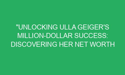 Unlocking Ulla Geiger’s Million-Dollar Success: Discovering Her Net Worth in 2021! Introduction: Have you ever wondered about the amazing achievements of successful people? Well, today we are going to dive deep into the life of Ulla Geiger, a remarkable entrepreneur, and uncover her incredible net worth in 2021! Ulla Geiger is a name many people