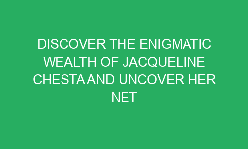 Discover the Enigmatic Wealth of Jacqueline Chesta and Uncover her Net Worth Secrets In this captivating blog post, we will embark on an intriguing journey into the enigmatic world of Jacqueline Chesta, a woman of immense wealth and influence. Prepare to uncover the secrets behind her extravagant lifestyle and the factors that have contributed to