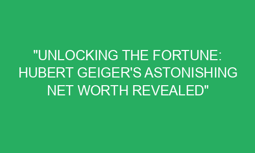 Astonishing Net Worth Revealed: Unlocking the Fortune of Hubert Geiger Welcome to another exciting blog post where we delve into the amazing world of net worth! Today, we have something truly remarkable to share with you. We are about to uncover the astonishing fortune of a man named Hubert Geiger. Get ready to be amazed
