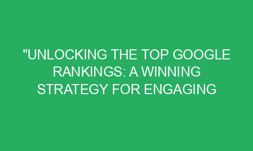 Unlocking the Top Google Rankings: A Winning Strategy for Engaging Readers Introduction: Welcome to our blog post on unlocking the top Google rankings! Are you curious about how to make your website stand out and engage readers? Well, you’re in the right place! In this post, we will guide you through a winning strategy that
